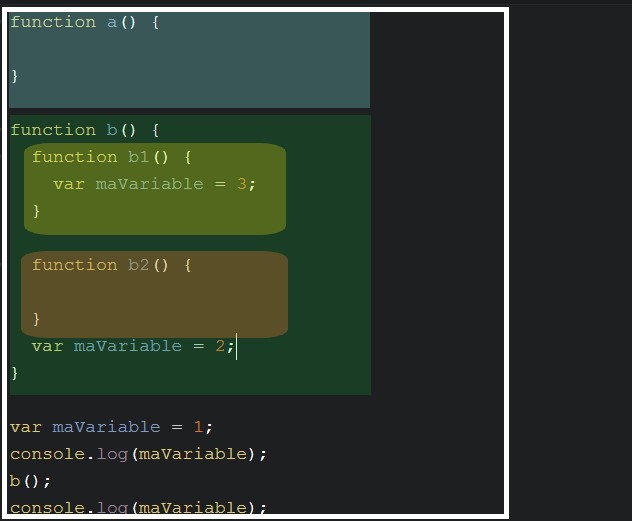 Dans cette situation, les 3 identifiants maVariable représentent des variables différentes et ne s'affectent pas entre elles. L'exécution de ce code renvoie: